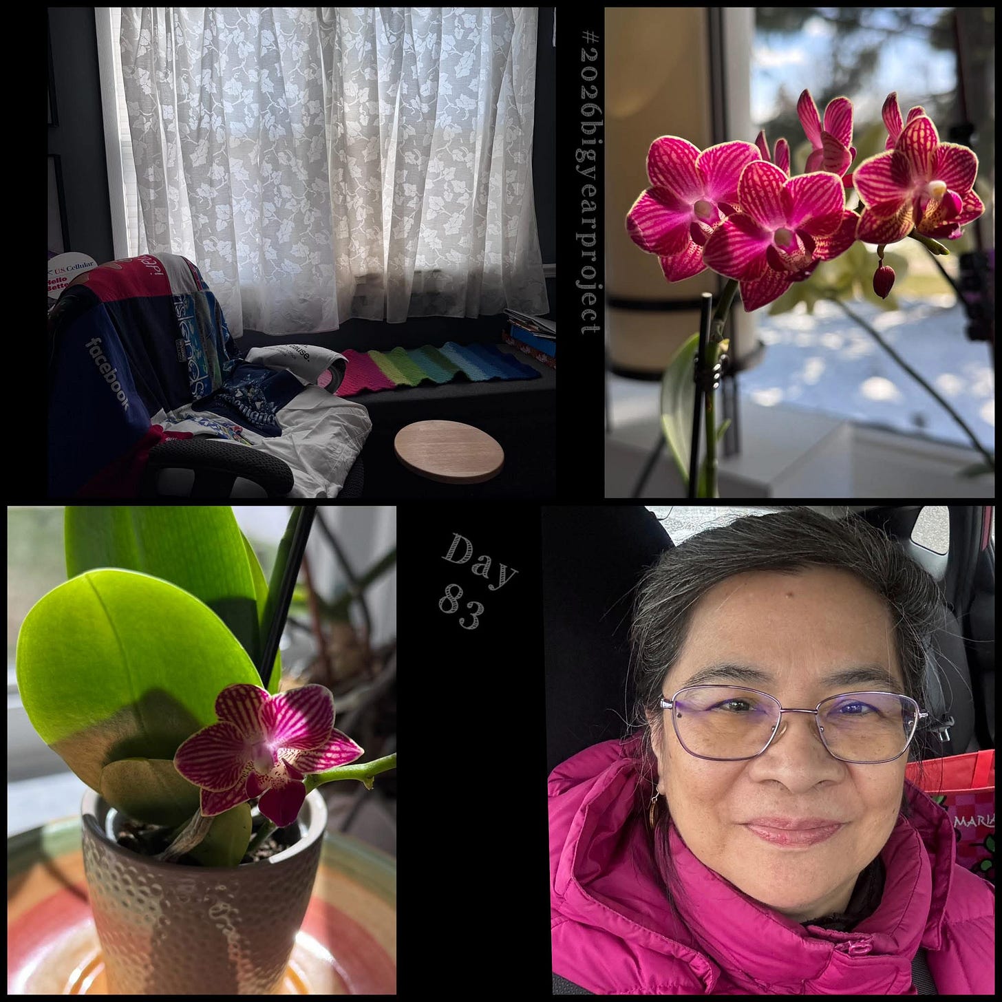 When the bleak midwinter (or last dregs of winter) start making me feel restless, I take in the delicate scent of my teeniest orchid and absorb the bright blooms of my two other tropical plants. I keep colorful blankets around the places where we sit and shiver. I use full-spectrum bulbs. I wear a color palette that uses shades found in wildflower gardens.